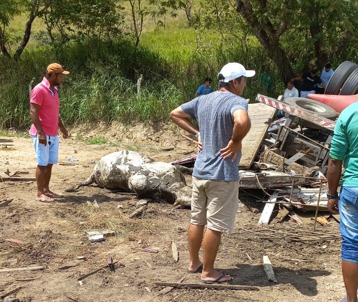 Um motorista de 72 anos, morreu após um caminhão carregado de bois tombar no fim da manhã desta segunda-feira (08), em um trecho da BR-316, no município de Maribondo, Agreste de Alagoas. Alguns animais que estavam sendo transportados também morreram.