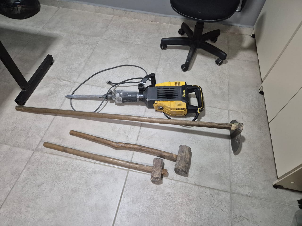 Ao chegar ao local indicado, os agentes flagraram os quatro homens demolindo a estrutura com o uso de um martelete industrial, duas marretas e uma enxada. A ação causava danos à mureta central da rodovia e representava perigo para quem transitava pela via naquele momento.