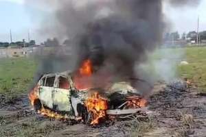 Imagens que circularam nas redes sociais mostram o automóvel em chamas e os dois ocupantes arremessados para fora, ficando a metros de distância do ponto onde o carro parou.