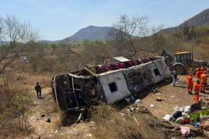 De acordo com a perícia, o veículo saiu da pista ao fazer a curva, caiu em uma ribanceira de aproximadamente cinco metros e capotou. O impacto provocou a morte de 16 pessoas — cinco homens, sete mulheres e quatro crianças — e deixou dezenas de feridos.