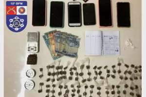 Diante das informações, as guarnições receberam uma denúncia anônima, dando conta que a arma utilizada no crime estaria na casa do mandante e se deslocaram até a residência do mesmo e após autorização por escrito de sua genitora, foram feitas buscas no local e foram encontradas na residência várias bombinhas de maconha, cocaína, celulares sem nota fiscal, balança de precisão, caderneta com anotações de venda de drogas e dinheiro.