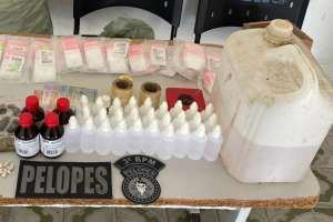 Após a ação, o suspeito abriu a porta e permitiu a entrada dos agentes, que encontraram diversos materiais utilizados no preparo e embalagem de drogas, incluindo um galão com cinco litros de “loló”.