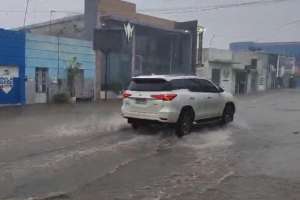 As chuvas intensas fizeram com que várias ruas ficassem completamente alagadas, dificultando a circulação de pedestres e veículos. Em vídeos que circulam nas redes sociais, é possível observar a força da água descendo pelas vias.