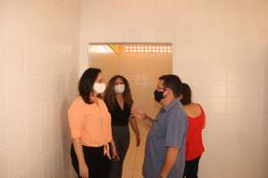 Com cobertura, arquibancada, banheiros e vestiários, a quadra poliesportiva deve ser entregue à comunidade escolar da Vila Canaã até o final de outubro. Durante a visita, acompanhando a prefeita Fabiana Pessoa, a secretária de Educação e Esporte, Márcia Lúcio, o secretário de Infraestrutura, Varany Kelthone, e equipes técnicas do Município.