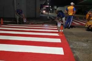 Os serviços de revitalização da sinalização horizontal começaram na noite da quinta-feira (17) e vão prosseguir na próxima segunda-feira (21).