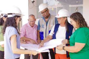 Na manhã desta quarta-feira (05), a prefeita Tia Júlia, acompanhada dos secretários municipais de Infraestrutura Thiago Tavares e de Educação Renilda Pereira, além da secretária – adjunta de Infraestrutura Isabel Basílio, realizou uma visita técnica às obras de construção da nova sede da Escola Municipal Vereador Elói Barbosa, localizada na comunidade rural de Caraíbas Tortas.