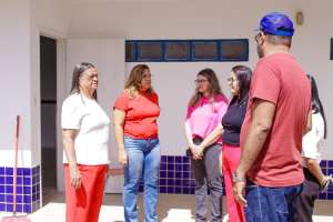 Logo após a visita ao CEI, a prefeita e sua equipe seguiram para a Escola Deputado José Sampaio, onde está sendo feita uma reforma no espaço. Entre as melhorias, estão sendo realizadas pintura, realocações de salas e outras adequações.