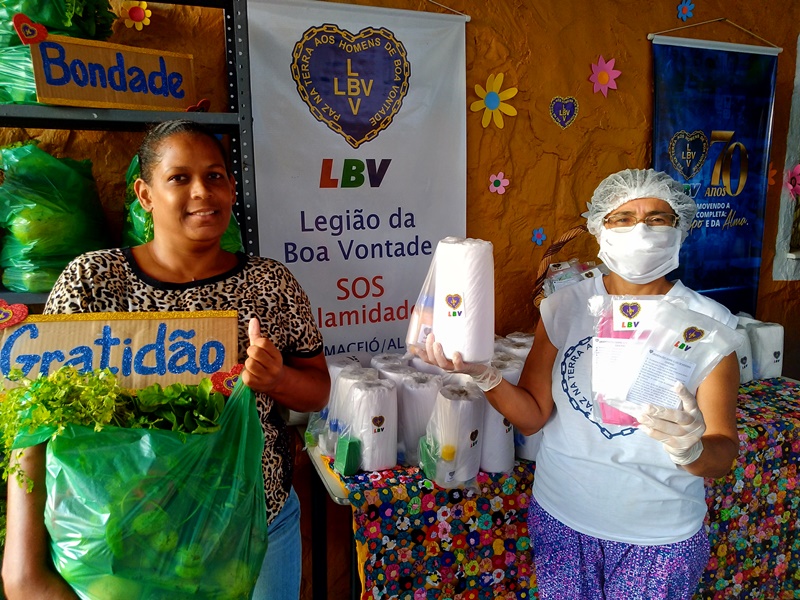 A campanha LBV — SOS Calamidades, da Legião da Boa Vontade continua socorrendo às populações mais vulneráveis afetadas pela pandemia do novo coronavírus em Alagoas e no Brasil. Além de amparar as famílias em vulnerabilidade social atendidas em seus serviços e programas socioeducacionais, auxilia também famílias em risco alimentar amparadas por organizações parceiras, oferecendo a elas cestas de alimentos e kits de material de limpeza e de higiene, para que não passem fome e se previnam da Covid-19.