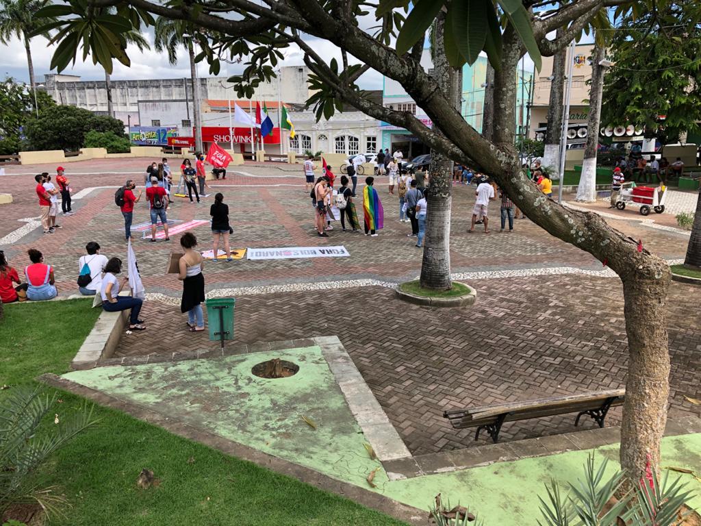 Os manifestantes percorreram ruas com carro de som e chegaram a praça da Independência, em frente à prefeitura do município, no centro da cidade. Os participantes gritaram ‘fora Bolsonaro’ e portaram faixas também com mensagens críticas ao presidente.
