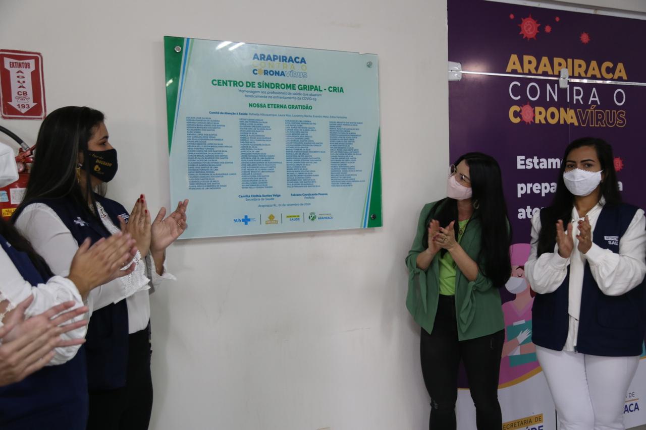 Após atingir a faixa de aproximadamente 7 mil atendimentos, o Centro de Síndrome Gripal, que estava funcionando no prédio do Centro de Referência Integrado de Arapiraca (CRIA), foi fechado devido a diminuição dos casos ativos da Covid-19 em Arapiraca. A solenidade com homenagens aos profissionais de saúde que atuaram na linha de frente ocorreu na manhã da terça-feira (01).
