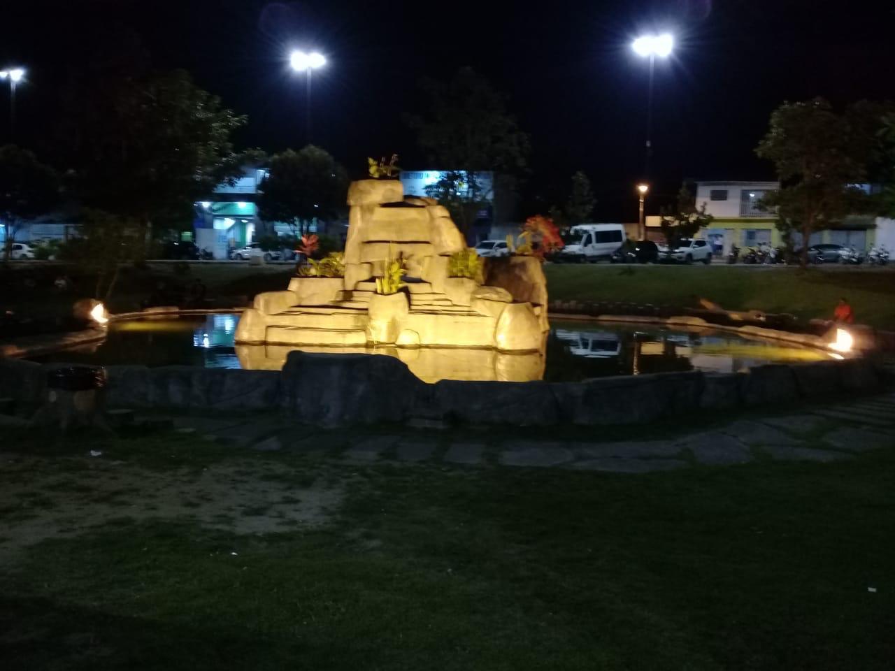 A fonte do Bosque das Arapiracas, um dos principais pontos turísticos da cidade, e o Ginásio Municipal João Paulo II, no Parque Ceci cunha, Centro, já ganharam a iluminação amarela, instalada por equipes da Secretaria de Serviços Públicos.