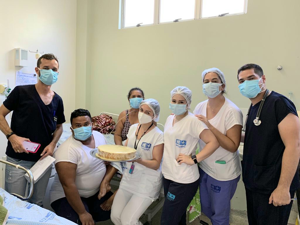 Durante o período de internação, Maria Edna fez aniversário no último dia 26 de abril e recebeu um bolo de presente da equipe do hospital.