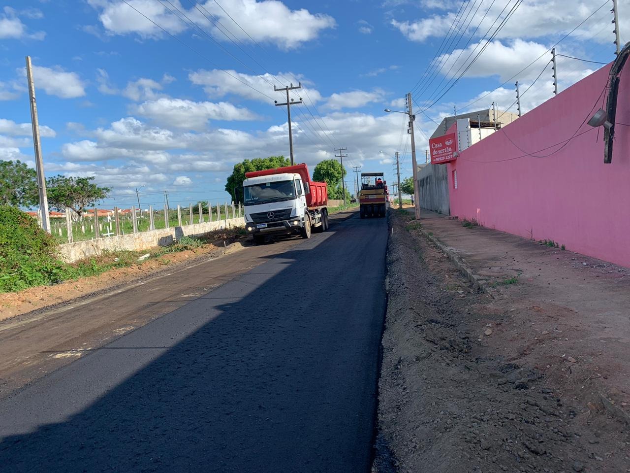 De acordo com o engenheiro civil Yago Duarte, responsável pela obra, as equipes da Infraestrutura já entraram na etapa de aplicação o asfalto na Rua Antônio Lopes da Silva. “Nesta rua serão aproximadamente 356 metros de asfalto e a previsão é que esta obra seja finalizada até amanhã, sábado (14)”, destaca.
