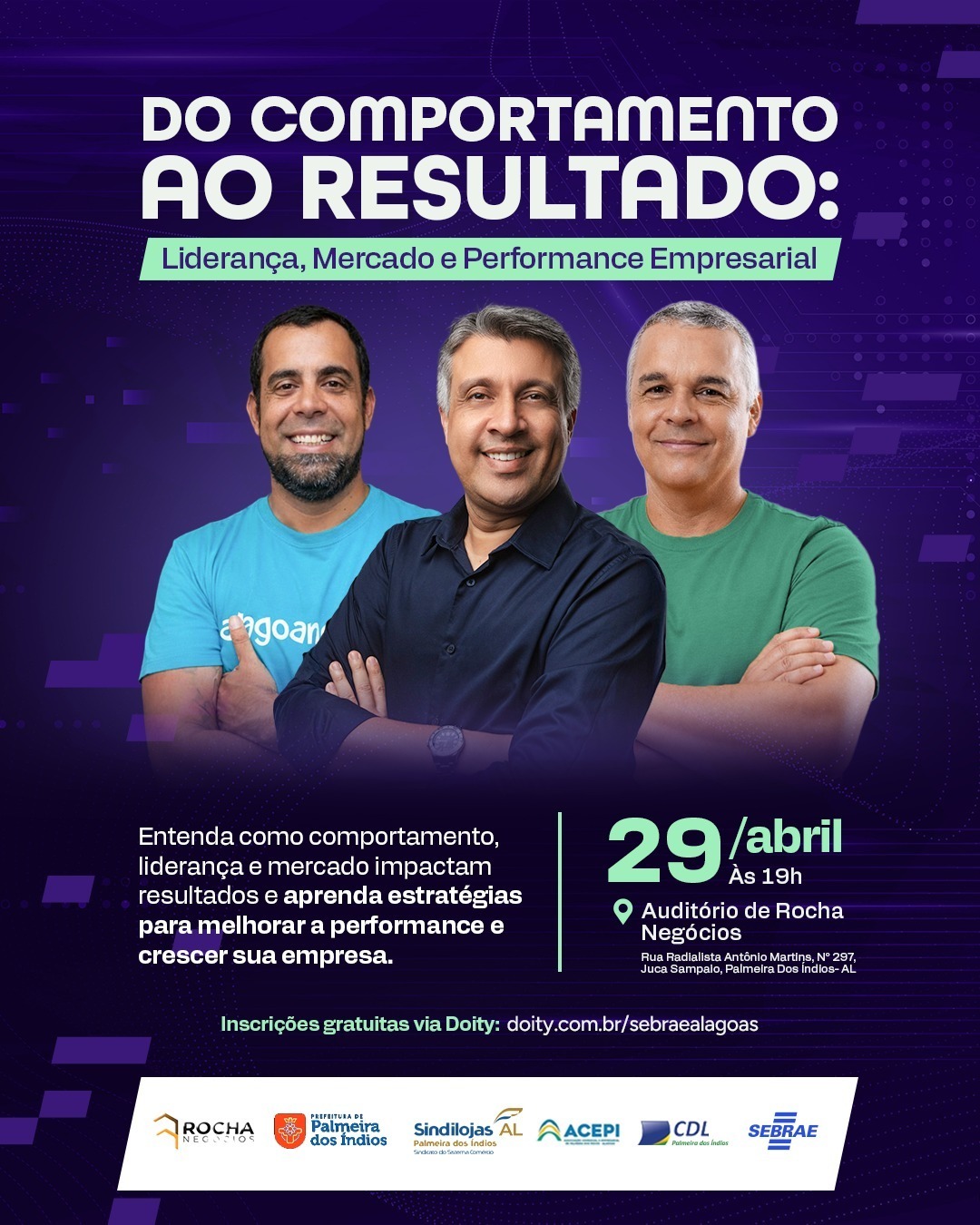 Empresários e gestores de micro e pequenas empresas de Palmeira dos Índios, no Agreste de Alagoas, terão uma oportunidade estratégica de capacitação e troca de experiências nesta quarta-feira (29). Um encontro voltado ao fortalecimento da tomada de decisões e ao desenvolvimento empresarial será realizado às 19h, na sede da Rocha Negócios.
