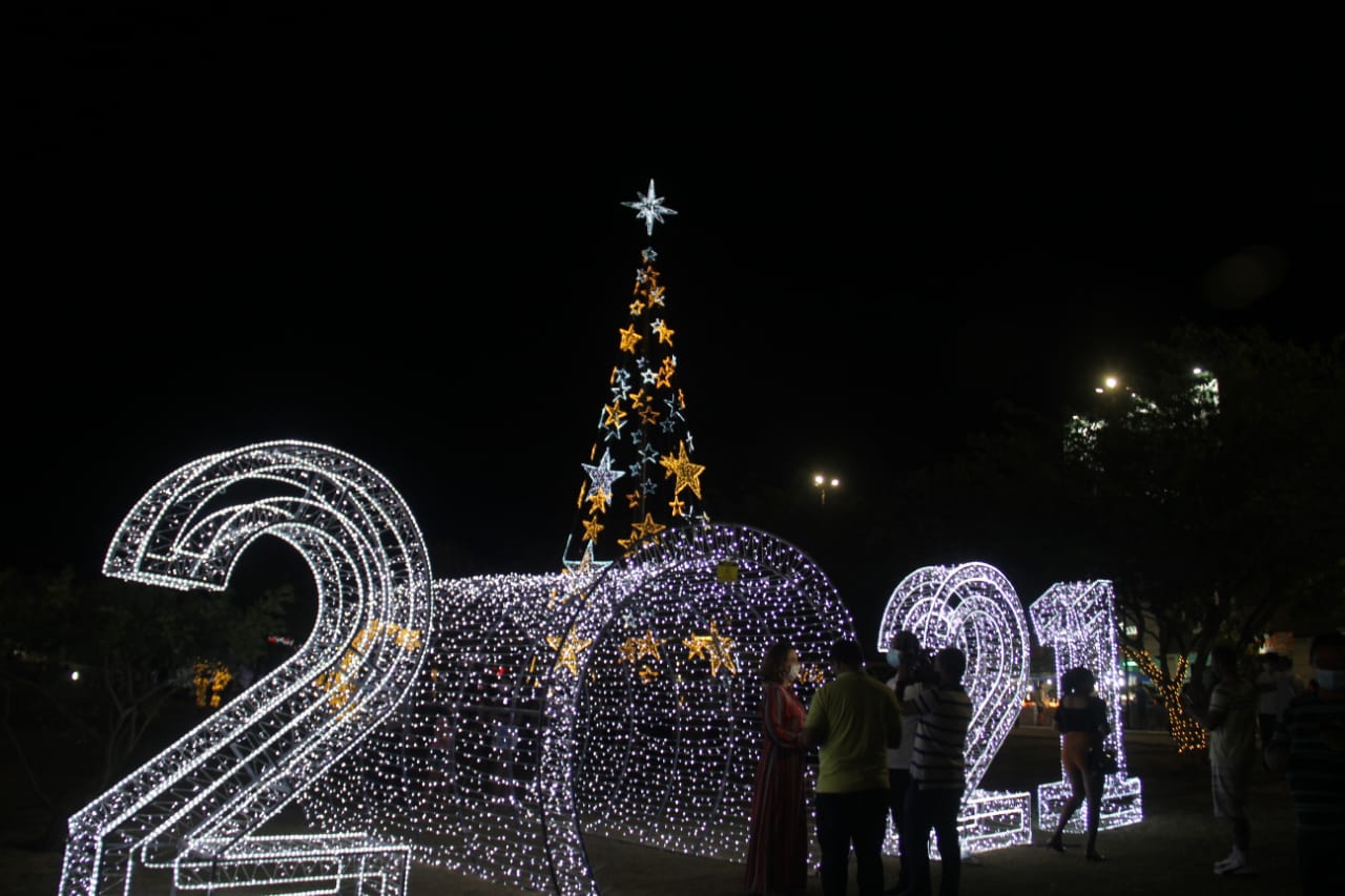Com luzes brancas, a ACISA desenhou o número do ano de 2021 e fez um túnel de luzes para a chegada do novo ano que se aproxima.