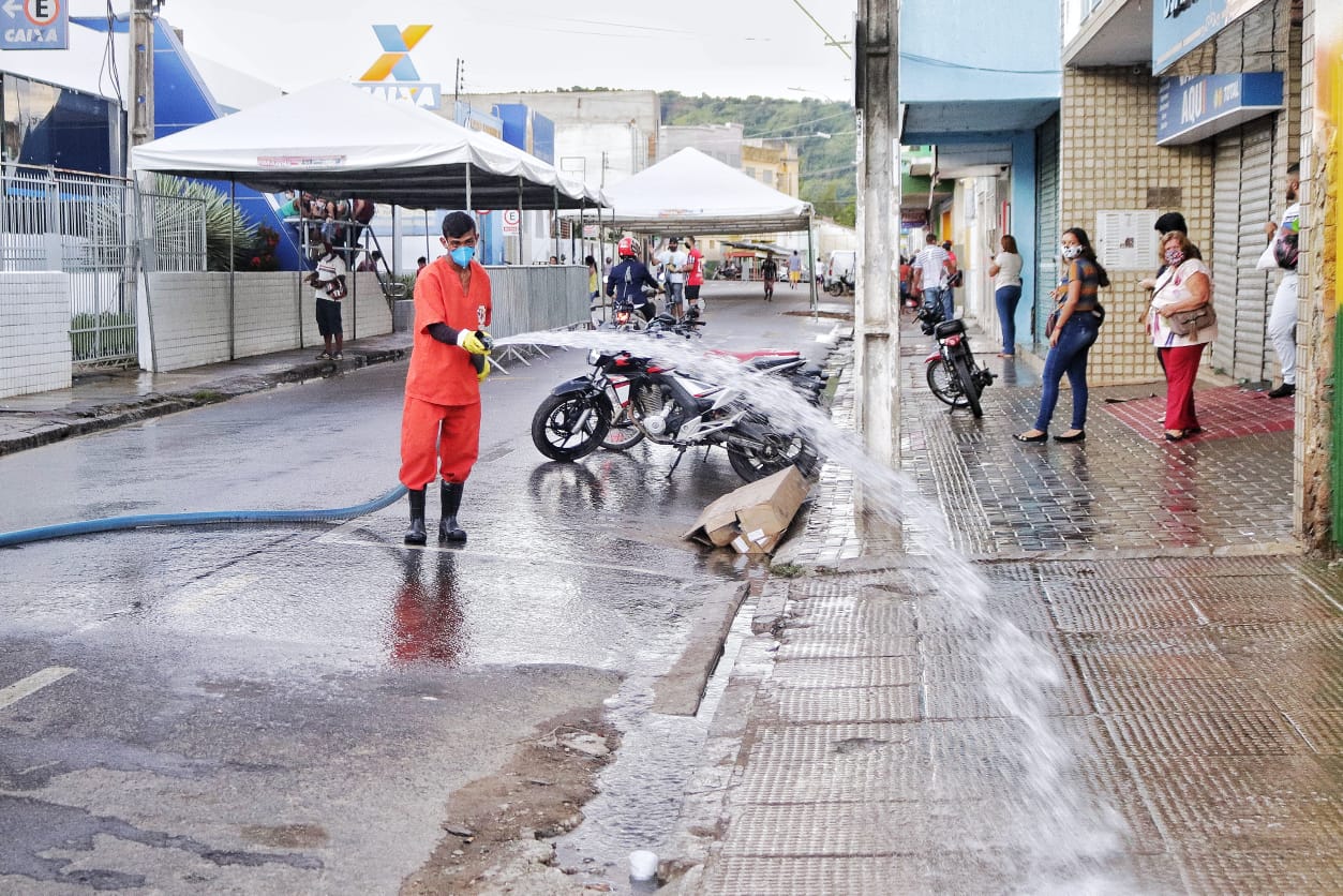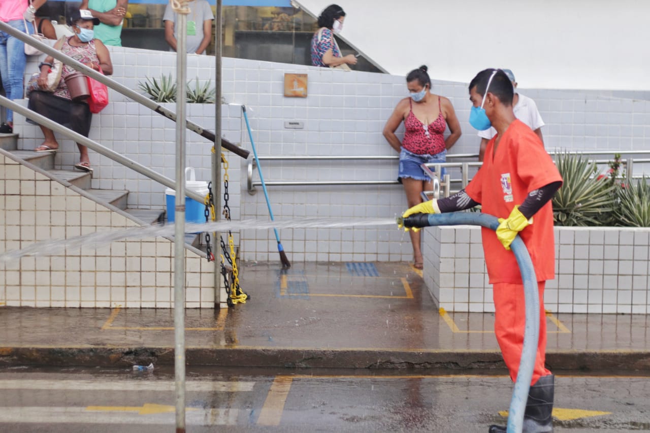 A higienização está sendo feita com água e cloro e é mais um ação de combate ao vírus. “Já vínhamos fazendo esse trabalho, mas estamos intensificando devido às aglomerações nos bancos e casas lotéricas. A prefeitura tem trabalhado incansavelmente para conter o número de casos no município e o nosso objetivo é fazer a desinfecção de ruas e evitar o avanço do vírus em nossa cidade”, disse o secretário da SPCU Gilmar Torres.