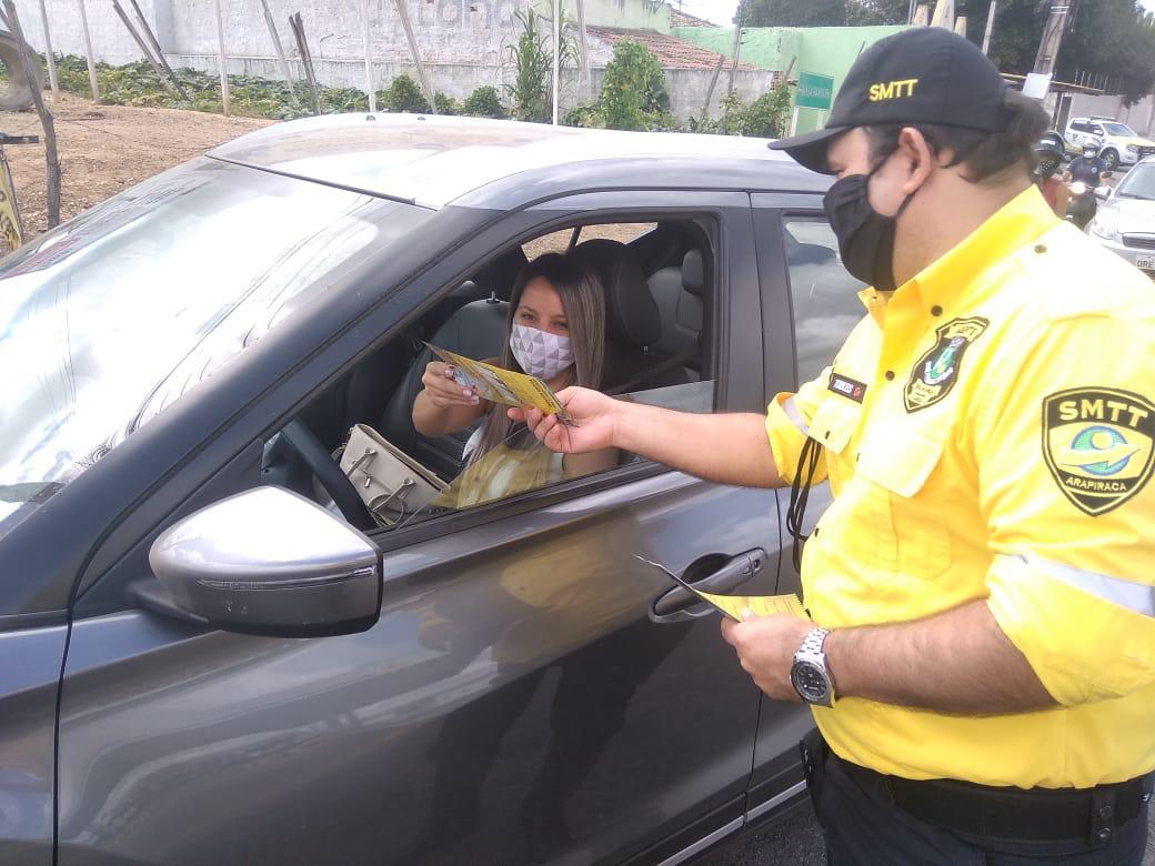 A Prefeitura de Arapiraca realizou, na manhã desta quarta-feira (23), uma força-tarefa com ações educativas de trânsito para celebrar a Semana Nacional de Trânsito (SNT), na Rodovia Estadual AL-220.